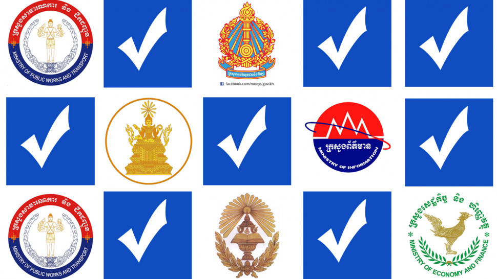 ខាងក្រោមនេះជាឈ្មោះក្រសួងទាំង២៨របស់កម្ពុជាដែលមានផេកទទួលស្គាល់ផ្លូវការ និងផេកមិនទាន់ទទួលស្គាល់ផ្លូវការ៖