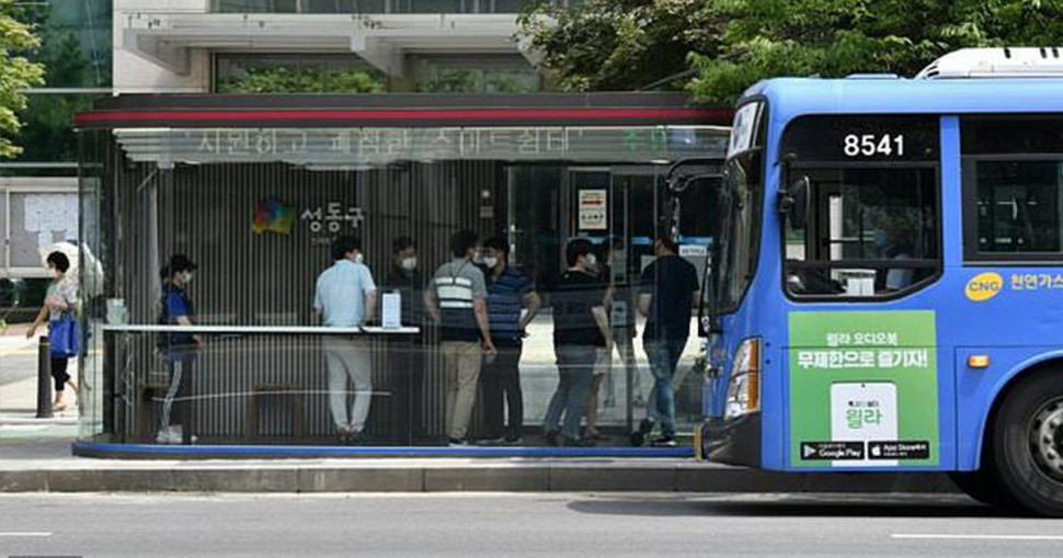 កូរ៉េខាងត្បូងបានបើកដំណើរការបច្ចេកវិជ្ជាថ្មីឈានមុខមួយក្នុងការប្រយុទ្ធប្រឆាំងនឹងជំងឺកូវីដ១៩ ដោយធ្វើជម្រកការពាររថយន្ដក្រុងជាមួយទ្វារស្ទង់កម្តៅនិងអំពូលបាញ់កាំរស្មីយូវីកម្ចាត់មេរោគ។ ទីចំណតទំនើបចំនួន ១០ កន្លែងត្រូវបានដំឡើងនៅសង្កាត់ភាគឦសានទីក្រុងសេអ៊ូលដោយផ្តល់ការការពារពីភ្លៀងមូសុង កម្តៅនារដូវក្តៅ និង វីរុសកូរ៉ូណា។ ដើម្បីអាចឡើងលើឡានក្រុងបាន អ្នកដំណើរត្រូវតែឈរនៅពីមុខម៉ាស៊ីនថតកម្តៅដោយស្វ័យប្រវត្ត ហើយទ្វារនឹងបើកឱ្យចូល ទាល់តែអ្នកដំណើរមានសីតុណ្ហភាពទាបជាង ៣៧,៥ អង្សាសេ។ ម៉ាស៊ីនថតដាច់ដោយឡែកមួយទៀតត្រូវបានដំឡើងនៅកម្ពស់ទាបដើម្បីពិនិត្យលើកុមារ។