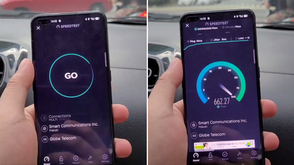 ថ្មីៗនេះក្រុមការងារបច្ចេកវិទ្យា Gizguide ក្នុងប្រទេសហ្វីលីពីន បានសាកល្បងធ្វើតេស្តល្បឿន 5G ប្រភេទ Global Network ដែលមានអង់តែនតំឡើងរួចរាល់ក្នុងប្រទេសអាស៊ានមួយនេះ។