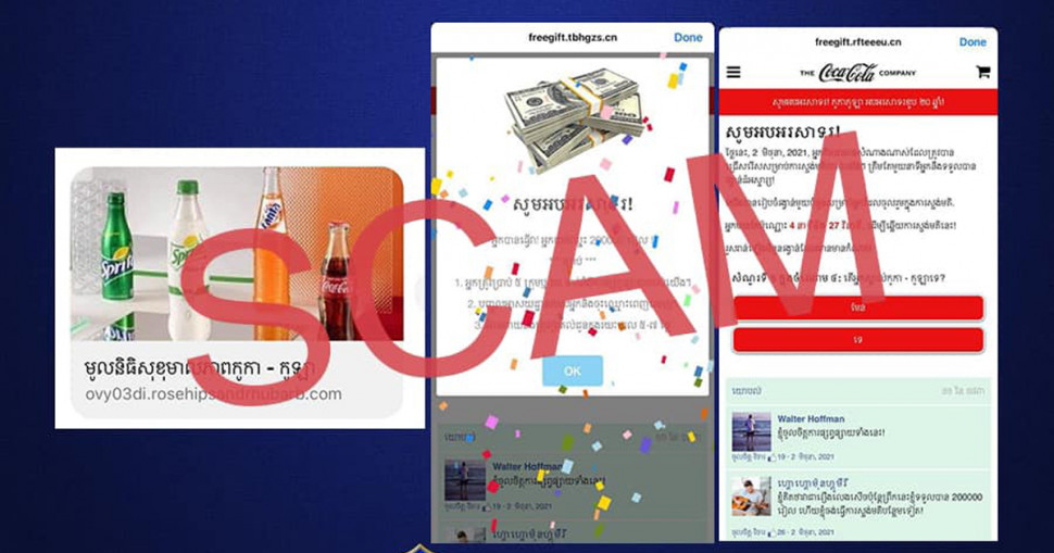 មន្ត្រីជំនាញ ប្រាប់ឲ្យប្រយ័ត្នពីសារឈ្នះរង្វាន់ពីក្រុមហ៊ុនកូកា-កូឡា ល្បីពេញបណ្ដាញសង្គមល្ងាចមិញ