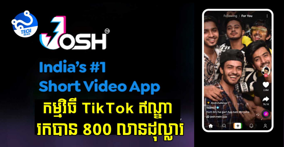 រំលងបានមួយសប្ដាហ៍ បន្ទាប់ពីគ្មានវត្ដមាន TikTok ក្នុងប្រទេស។ ឥណ្ឌា ក៏បង្កើតបានកម្មវិធីមួយថ្មីឈ្មោះថា «JOSH» រហូតមកដល់ពេលនេះវាមានអាយុ ២២ ខែហើយ និងកំពុងទទួលបានការដោនឡូតប្រើជាប្រចាំខែ នៅឥណ្ឌាកើនដល់ ១៥០ លាន (active users)។