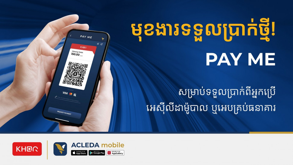 មុខងារសម្រាប់ទទួលប្រាក់ថ្មី (PAY ME) នៅលើអេស៊ីលីដាម៉ូបាល យើងអាចបង្កើត QR Code ឬ Link រួចផ្ញើទៅឱ្យអ្នកបង់ប្រាក់ ដែលប្រើអេស៊ីលីដាម៉ូបាល ឬប្រើអេបធនាគារផ្សេង បានយ៉ាងងាយស្រួល ជាពិសេសអាចកំណត់ចំនួនទឹកប្រាក់ សម្រាប់បង់បានតាមតម្រូវការ។ ដើម្បីអាចប្រើមុខងារទទួលប្រាក់នេះ សូម Update អេស៊ីលីដាម៉ូបាល នៅក្នុង App Store, Google Play, ឬ AppGallery។