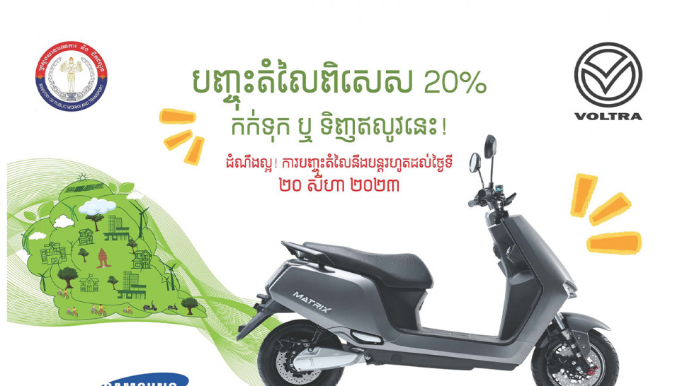 ក្រសួងសាធារណការ និងដឹកជញ្ជូន បានជូនដំណឹងដល់ក្រុមហ៊ុន VOLTRAថា ការឧបត្ថម្ភធន ២០% ក្នុងការទិញម៉ូតូអគ្គិសនី គឺអាចបន្តរហូតដល់ថ្ងៃទី ២០ ខែសីហា ឆ្នាំ ២០២៣ ដោយចំនួនមានកំណត់។