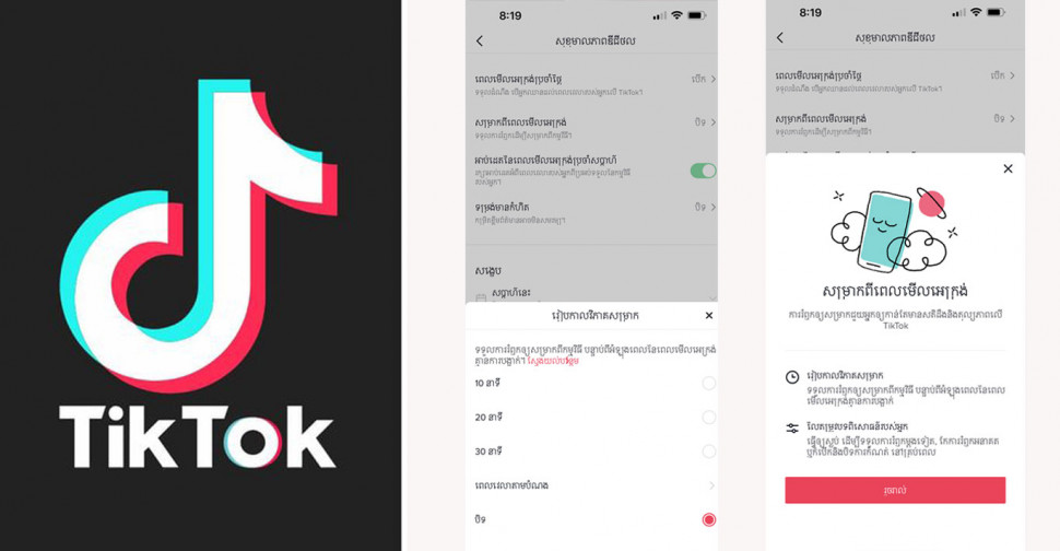 ឥឡូវនេះ យើងកំពុងដាក់ដំណើរការឧបករណ៍មួយទៀតដើម្បីអនុញ្ញាតឱ្យអ្នកប្រើប្រាស់គ្រប់គ្រងថា តើពួកគេចំណាយពេលវេលារយៈពេលប៉ុន្មាននៅលើ TikTok ក្នុងពេលមួយលើក ដោយបើកដំណើរការមុខងារសម្រាកសម្លឹងមើលអេក្រង់ជាប្រចាំ (regular screen time breaks)។ មុខងារទាំងនេះនឹងរំឭកអ្នកប្រើប្រាស់ឱ្យឈប់សម្រាកបន្ទាប់ពីពួកគេសម្លឹងមើលអេក្រង់ឥតឈប់ក្នុងរយៈពេលជាក់លាក់មួយ ដែលពួកគេអាចកំណត់តាមត្រូវការរបស់ខ្លួនបាន។