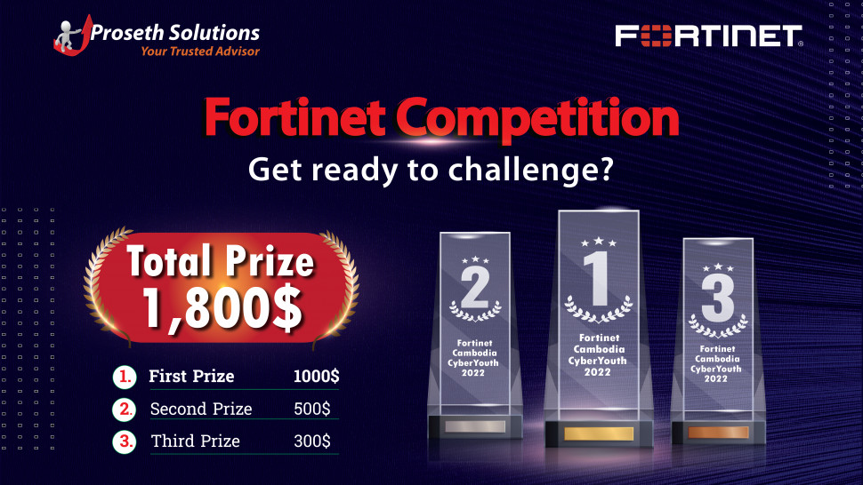 តោះ ចុះឈ្មោះចូលរួមប្រកួត បង្ហាញសមត្ថភាពទាំងអស់គ្នា។ សម្រាប់អ្នកចូលរួមប្រកួតអាចមានឱកាសឈ្នះពានរង្វាន់ទទួលស្គាល់ដោយក្រុមហ៊ុន Fortinet ដែលជា Global Leader of Cyber Security Solutions and Services ទាំងក្នុងនោះមានបែកចែកជា ៣ជ័យលាភី៖